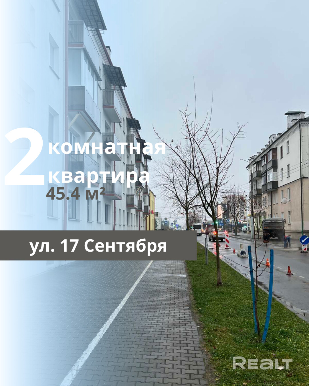 Продается двухкомнатная квартира по ул. 17 Сентября, расположенная на втором этаже четырехэтажного кирпичного дома, построенного в 1964 году, в самом центре города. Общая площадь квартиры составляет 45,4 кв.м, из которых жилая площадь — 28,6 кв.м, кухня — 5,7 кв.м. В квартире имеется совмещенный санузел, кладовая, прихожая и балкон. Также предусмотрен подвал. Квартира требует ремонта, что дает возможность создать пространство по своему вкусу.