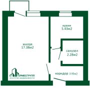 Общая площадь 29,2 м2, жилая 17,4 м2, кухня 5.4 м2.