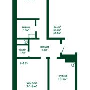 Общ. пл. 64,8 м2, жилая – 37,7 м2, кухня – 10,5 м2.