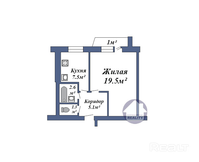- Жилая – 19.5 кв.м.;