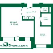 Общая площадь квартиры составляет 35,7 м2, жилая -19,7 м2, кухня 6,42 км2.