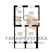 Общая площадь - 62,3 кв.м, жилая - 43,3 кв.м, кухня 7,1 кв.м.