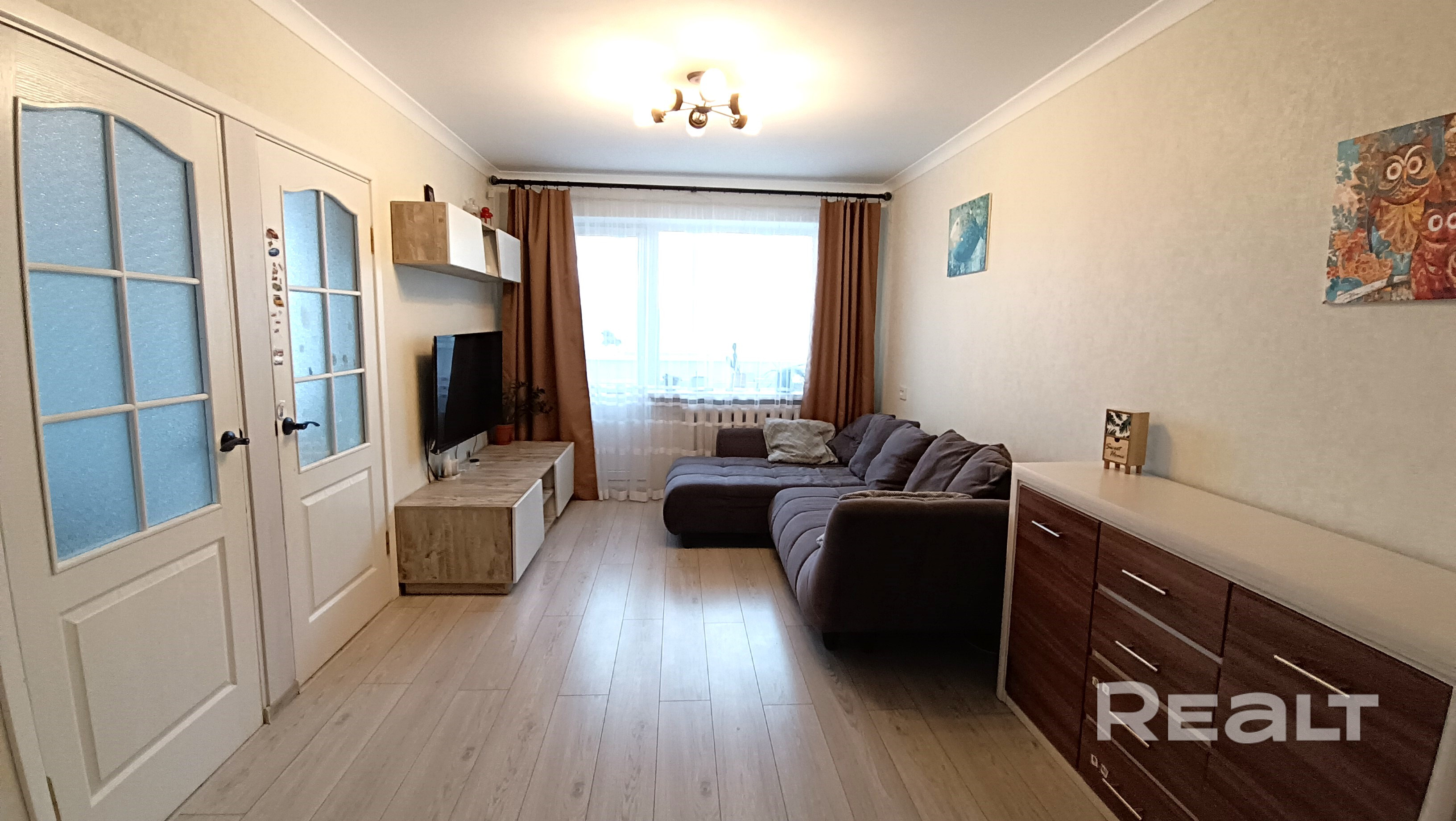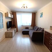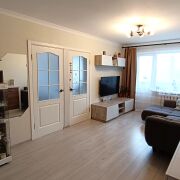 В квартире выполнен хороший ремонт. Окна стеклопакеты ПВХ, стены обклеены обоями, межкомнатные двери МДФ, входная – металлическая, полы – ламинат (комнаты)/плитка, потолки – снежка, в санузле плитка современного образца.