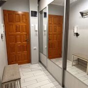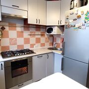 Новым владельцам остается кухонный гарнитур с бытовой техникой (электрический духовой шкаф, газовая варочная панель, посудомойка, вытяжка), шкаф-купе в коридоре.