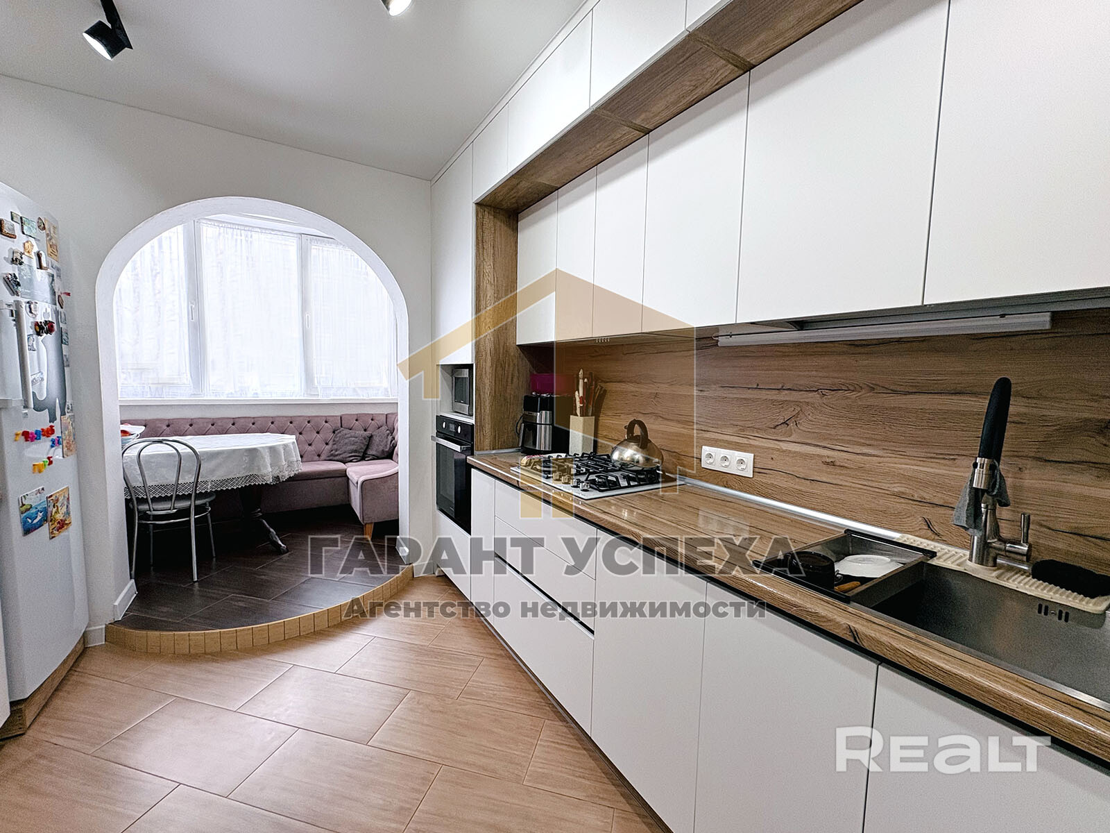 В продаже четырёхкомнатная квартира с современным ремонтом. Квартира расположена на третьем этаже 9-панельного дома 2008 года постройки по улице Суворова в Бресте.