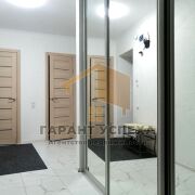 Окна ПВХ. Входная дверь - металлическая, межкомнатные двери - дерево. Полы - плитка, ламинат. Санузел облицован плиткой.