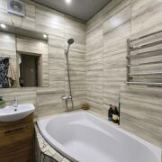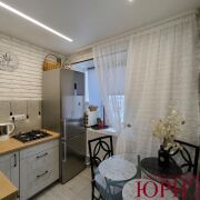 Квартира с современным ремонтом в светлых тонах: стеклопакеты, межкомнатные двери - МДФ, входная дверь металлическая, натяжные потолки, пол - ламинат на стяжке. В санузле современная плитка, заменены сантехнические трубы, частично заменена электропроводка.