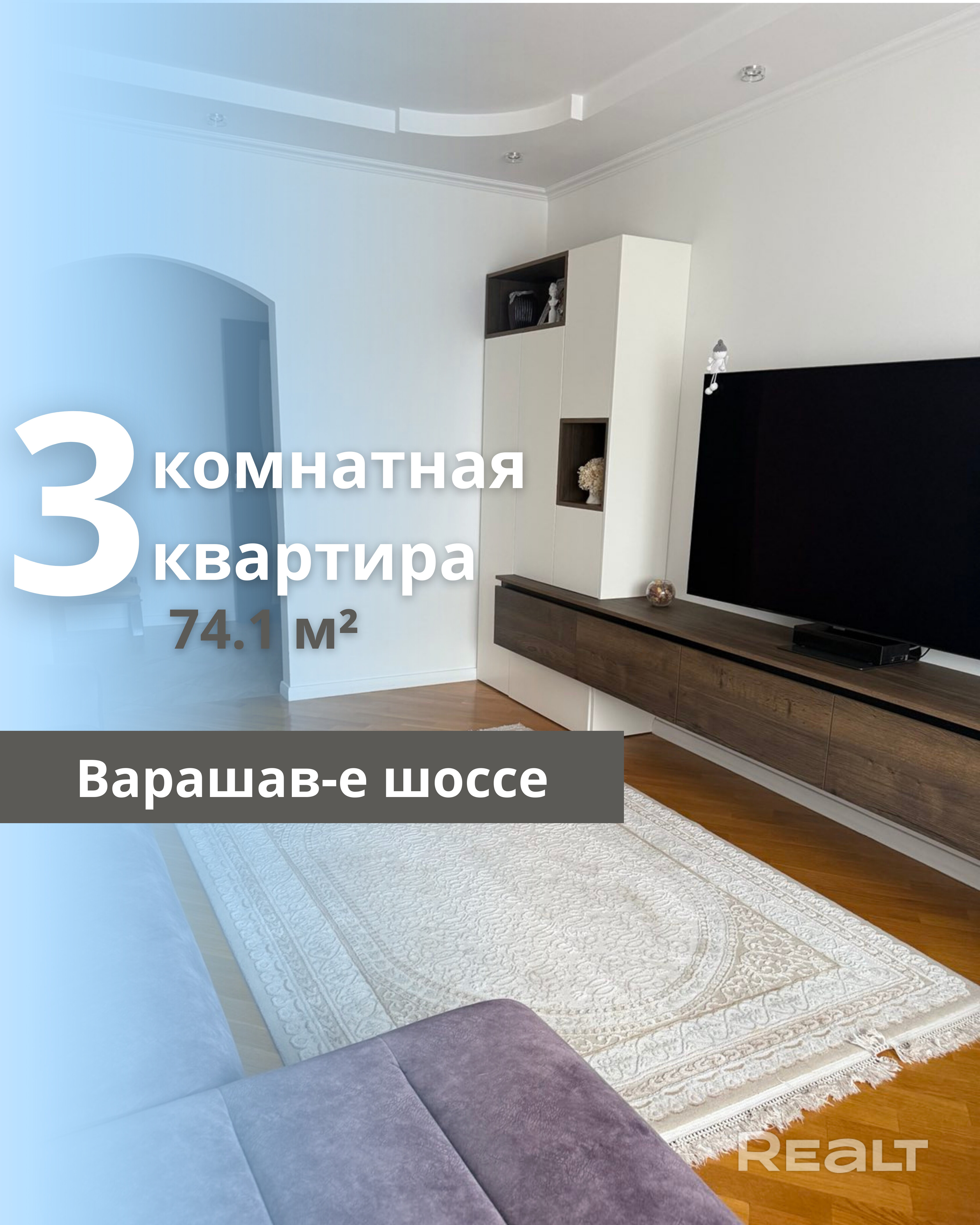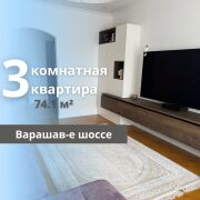 Продается 3-комнатная квартира на шоссе Варшавском, площадью 74.1 м² (41.8 м² жилая, 9.3 м² кухня) на 10 этаже 10-этажного панельного дома, построенного в 2011 году. Квартира оснащена тремя лоджиями и раздельным санузлом. Выполнен качественный ремонт, квартира полностью готова к проживанию. Полы выполнены из паркетной доски и керамогранита, кухня из массива дуба, а межкомнатные двери - из шпона. На кухне установлены теплые полы. Вся встроенная мебель и техника остаются в квартире.