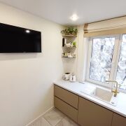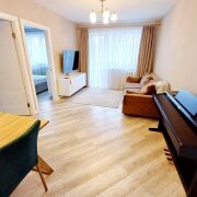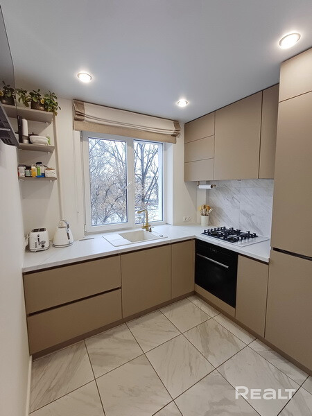 Трехкомнатная квартира на четвертом этаже 5-этажного панельного дома. Установлены стеклопакеты (профиль Rehau), окна жилых комнат выходят на разные стороны, что позволяет сохранять тепло зимой и поддерживать комфортную температуру летом. Входная дверь – металлическая, межкомнатные – из массива+МДФ с покрытием из эмали. В 2020 году в квартире был выполнен полный ремонт. Натяжные сатиновые потолки, шумоизоляция пола, теплые полы в коридоре, кухне, санузле. Санузел облицован современной керамической плиткой, заменены трубы на пластиковые, сантехника, полотенцесушитель, ванна и тропический душ, проведена полная гидроизоляция санузла, регуляторы на батареях. Новая электропроводка с устройствами защиты. В стоимость квартиры включена мебель и бытовая техника: встроенная кухня (фурнитура Blum с доводчиками), встроенный холодильник, варочная поверхность, духовой шкаф, мебель в санузле, встроенный шкаф в прихожей, шкаф и стол в детской комнате, тумба в зале. Имеется подвальное помещение.