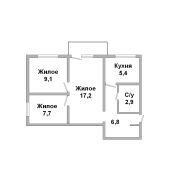 Трехкомнатная квартира, Пионерская ул. - 260037