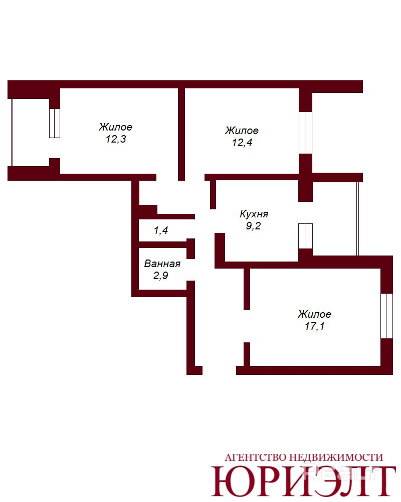 Лот. 9026 3-комнатная квартира, мкр. Ковалево