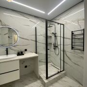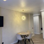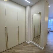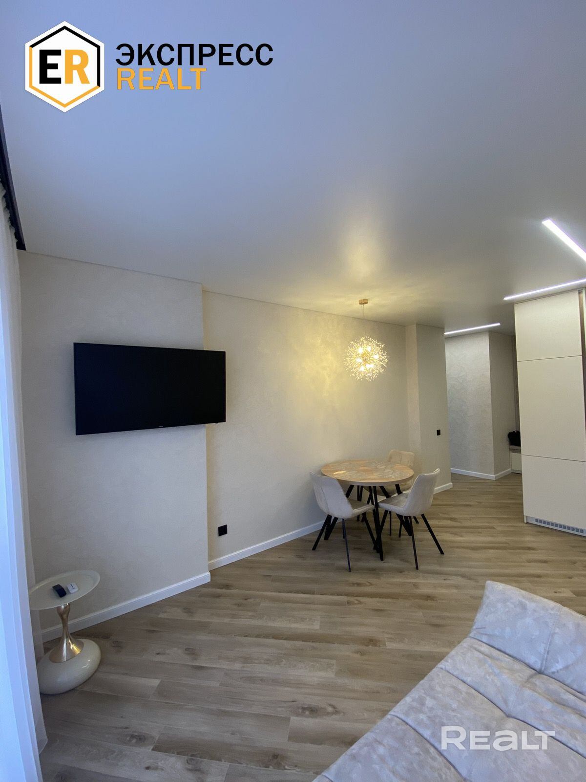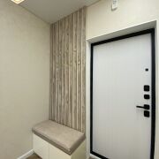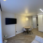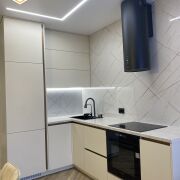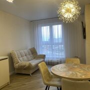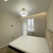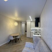 В квартире выполнен дизайнерский ремонт: натяжные потолки, установлено многоуровневое освещение, регулируемое пультом управления. Стены выровнены и оклеены обоями, современные двери экошпон с магнитной фурнитурой, входная дверь - металлическая. Совмещённый санузел, положена итальянская плитка, а также установлен водонагреватель Txermex. Уютная спальня, с ортопедическим матрасом, из которой есть выход на лоджию. Совмещённая кухня-гостиная оснащена необходимой встроенной техникой: индукционная варочная панель и духовка с функцией микроволновой печи - фирмы MAUNFELD, вытяжка Hietzee, встроенный холодильник.