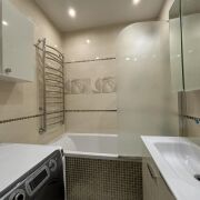 Квартира расположена на 2 этаже 10-этажного панельного дома 2014 года постройки. Общая площадь - 97.3 кв.м, жилая - 60.2 кв.м., кухня - 10.6 кв.м. С/у раздельный, три застеклённые и утеплённые лоджии. Окна - ПВХ, полы - ламинат/плитка (теплые полы в с/у и частично в коридоре).