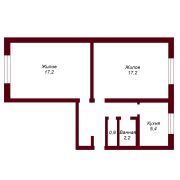 Квартира расположена на первом этаже, что обеспечивает легкий доступ. Площадь кухни составляет 5,4 кв.м., а две комнаты по 17, 2 кв.м. предлагают достаточно пространства для комфортного проживания. В прихожей оборудована гардеробная.