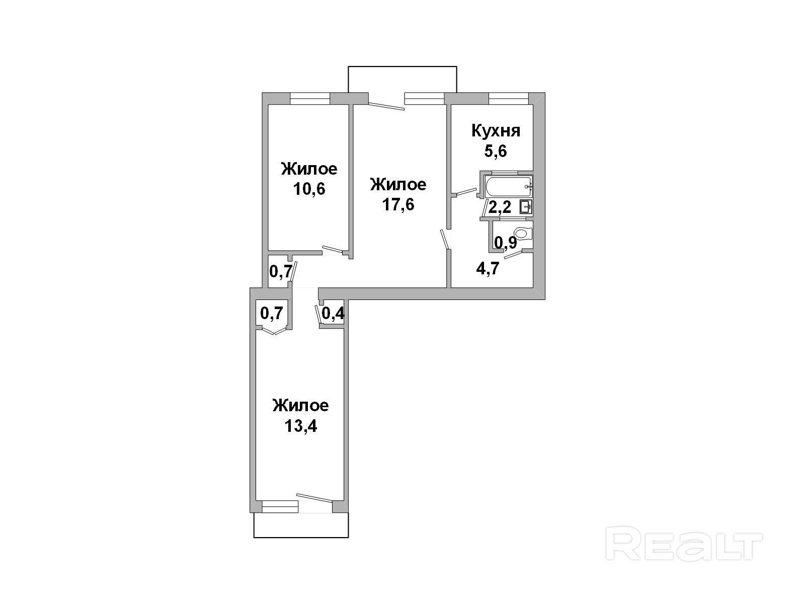 • Раздельных комнат