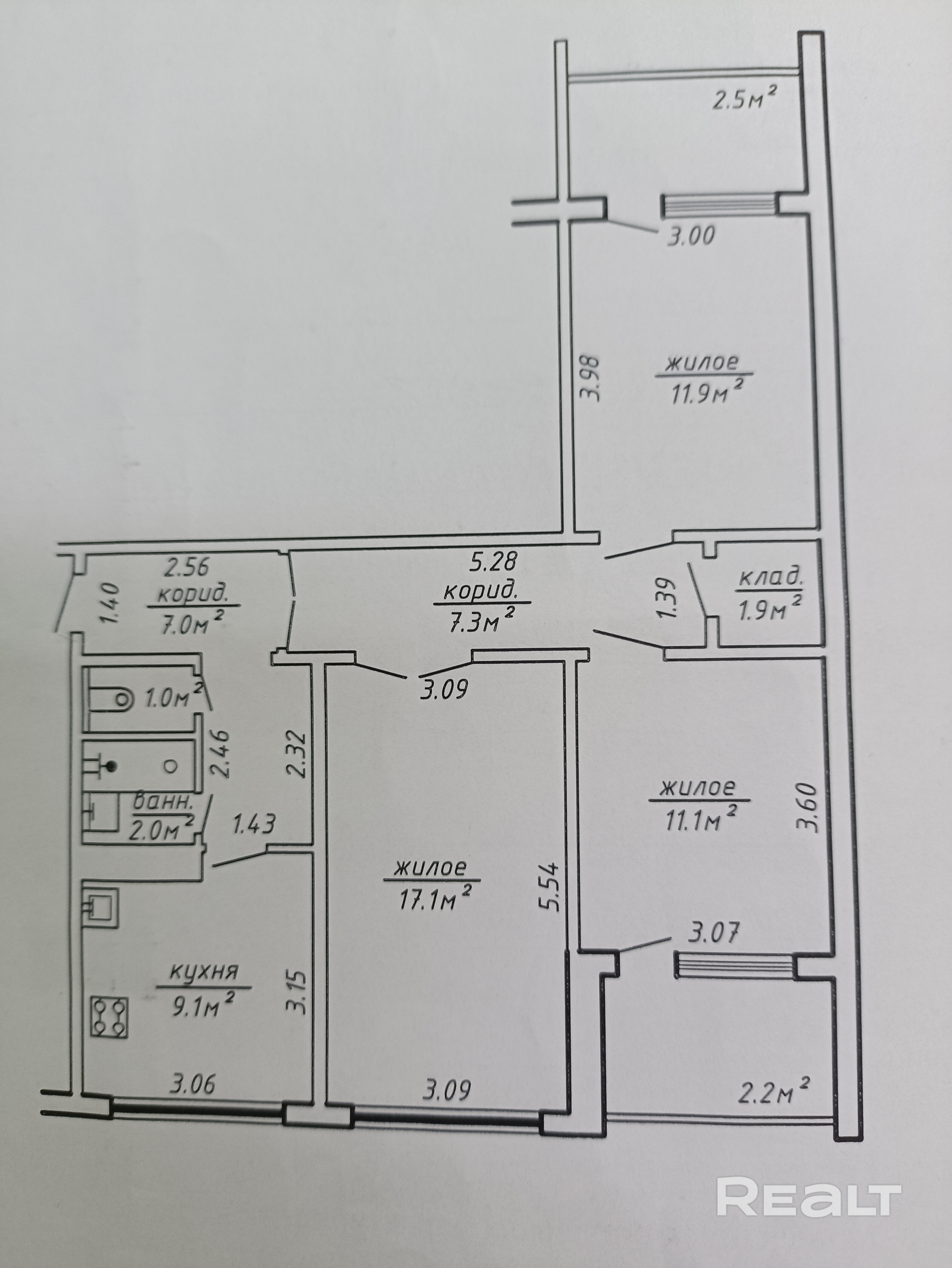 9.1 м²