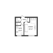 - Общая площадь составляет комфортные 31,3 квадратных метра, включая просторную жилую комнату площадью 18,7 кв.м и функциональную кухню размером 6,8 кв.м.
