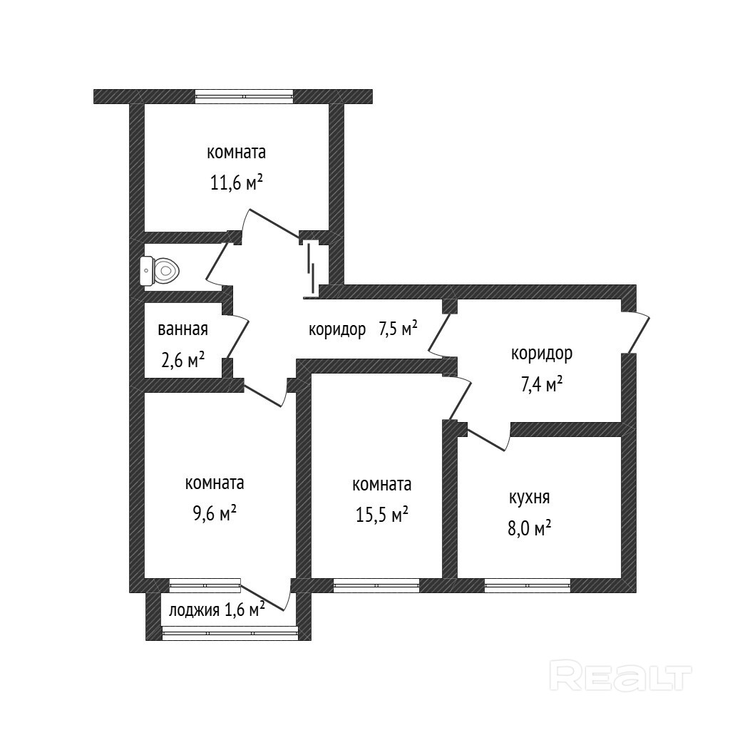 ! Жилая площадь квартиры: 36, 7 м2, состоит из 3 - х жилых комнат: 15,5 //11,6 //9,6 м2.