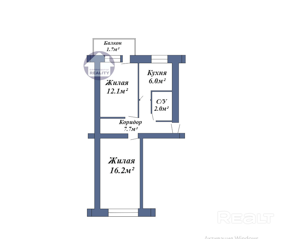 * Балкон – 1.7 кв.м.