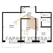 Площадь - 38.3 м2(по СНБ 39.1м2), кухня - 5.4 м2.