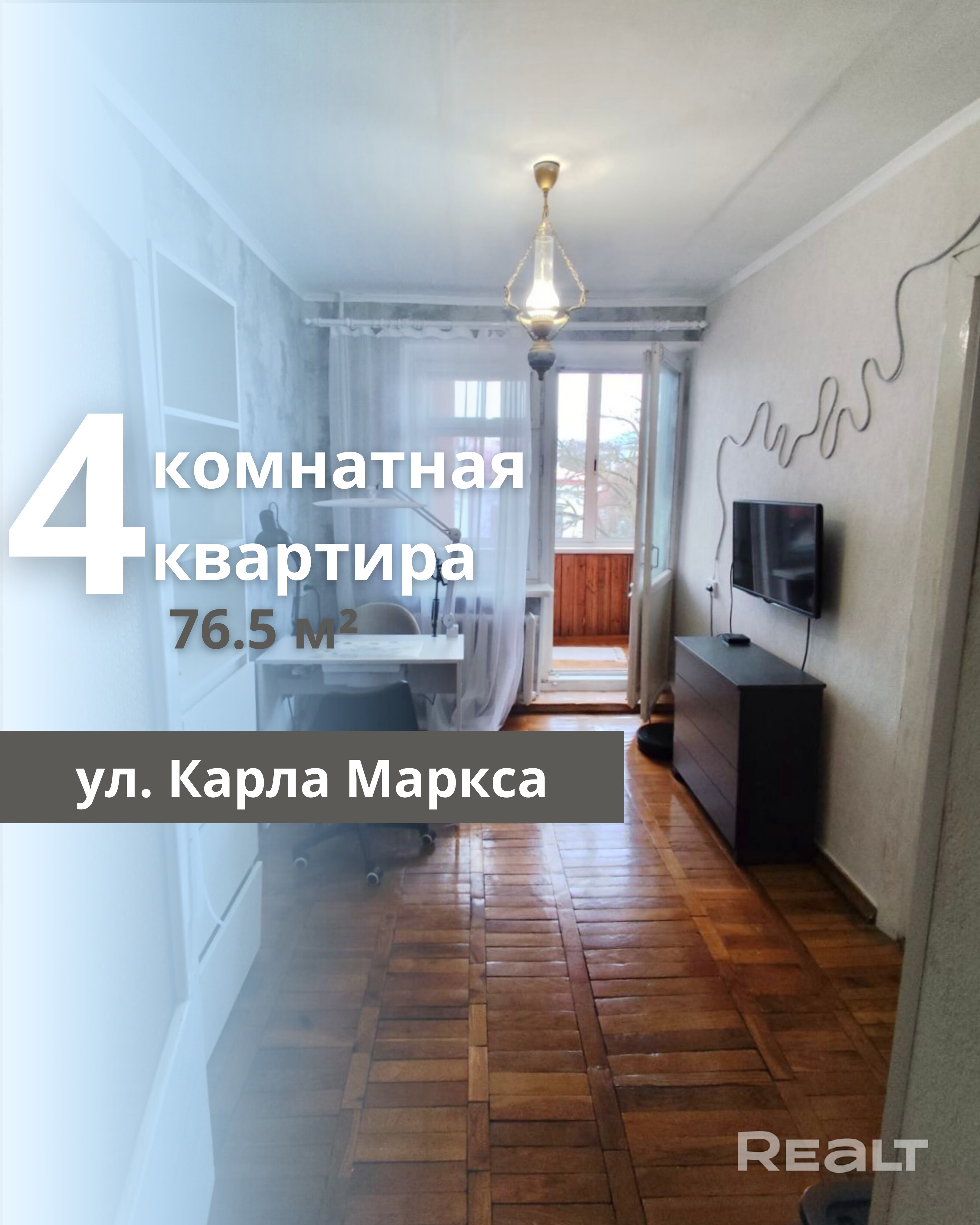 Продается 4-комнатная квартира в центре города по улице Карла Маркса, расположенная на 3 этаже 5-этажного кирпичного дома, построенного в 1984 году. Общая площадь квартиры составляет 76,5 кв. м (СНБ) / 72,2 кв. м, из которых жилая площадь — 49 кв. м, а кухня — 9,15 кв. м. В квартире предусмотрены четыре комнаты, кухня, раздельный санузел, кладовая и две лоджии. Уникальная планировка и максимальное использование полезной площади предоставляют отличные возможности для реализации вашего дизайн-проекта и создания идеального пространства для жизни. В непосредственной близости находится вся необходимая инфраструктура: гимназия, парк, магазины, рынок, банки и остановки общественного транспорта.