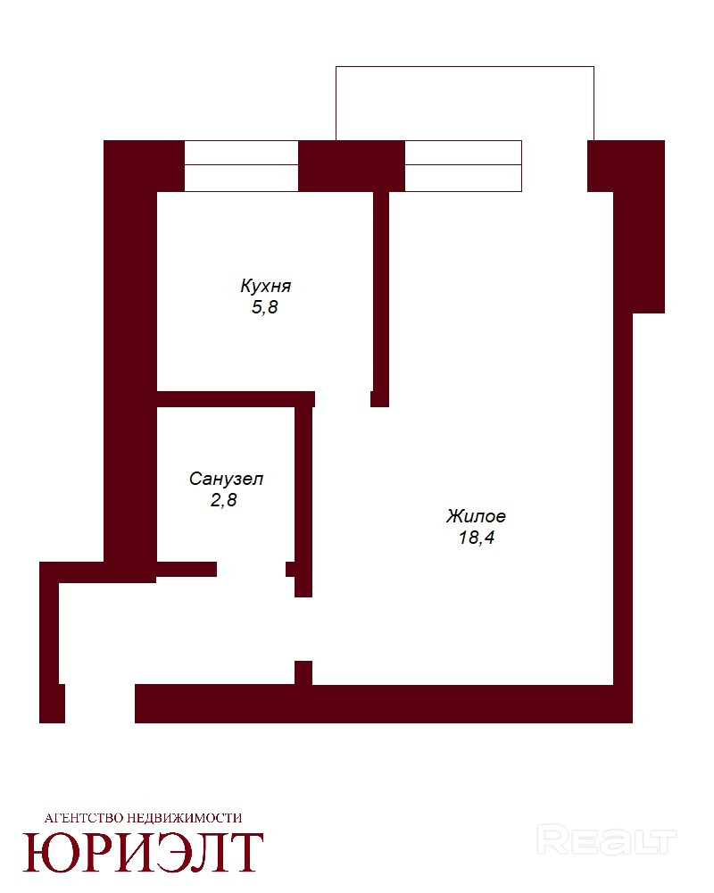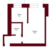 Общая площадь - 31 кв.м., жилая - 18,4 кв.м., кухня - 5,8 кв.м.