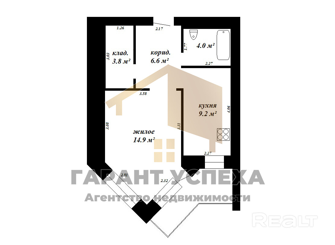 ЧУП «Гарант успеха», УНП 290472700, лицензия № 02240/137 от 20.10.2006 г., договор на оказание риэлтерских услуг №179/1 от 26.03.2026 г.