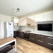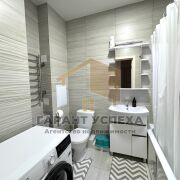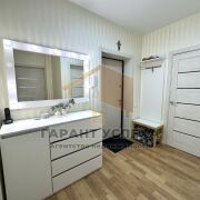 Современная отделка: На полу — качественный ламинат, стены оклеены обоями, потолок - натяжной. Раздельный санузел, облицованный плиткой.