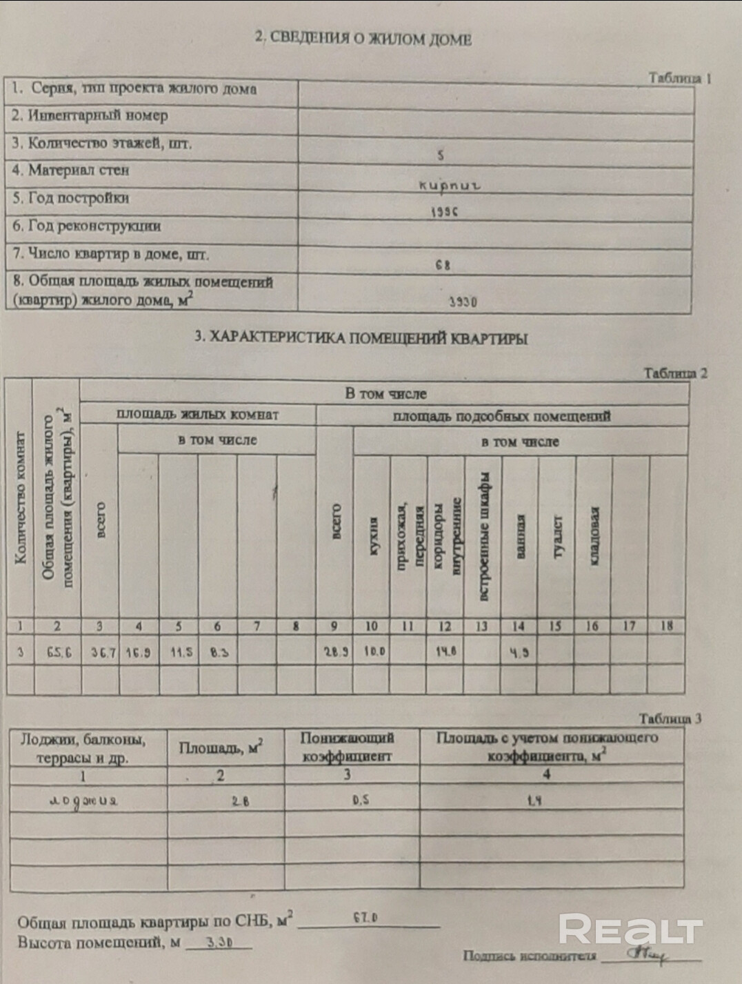 - Площадь жилая