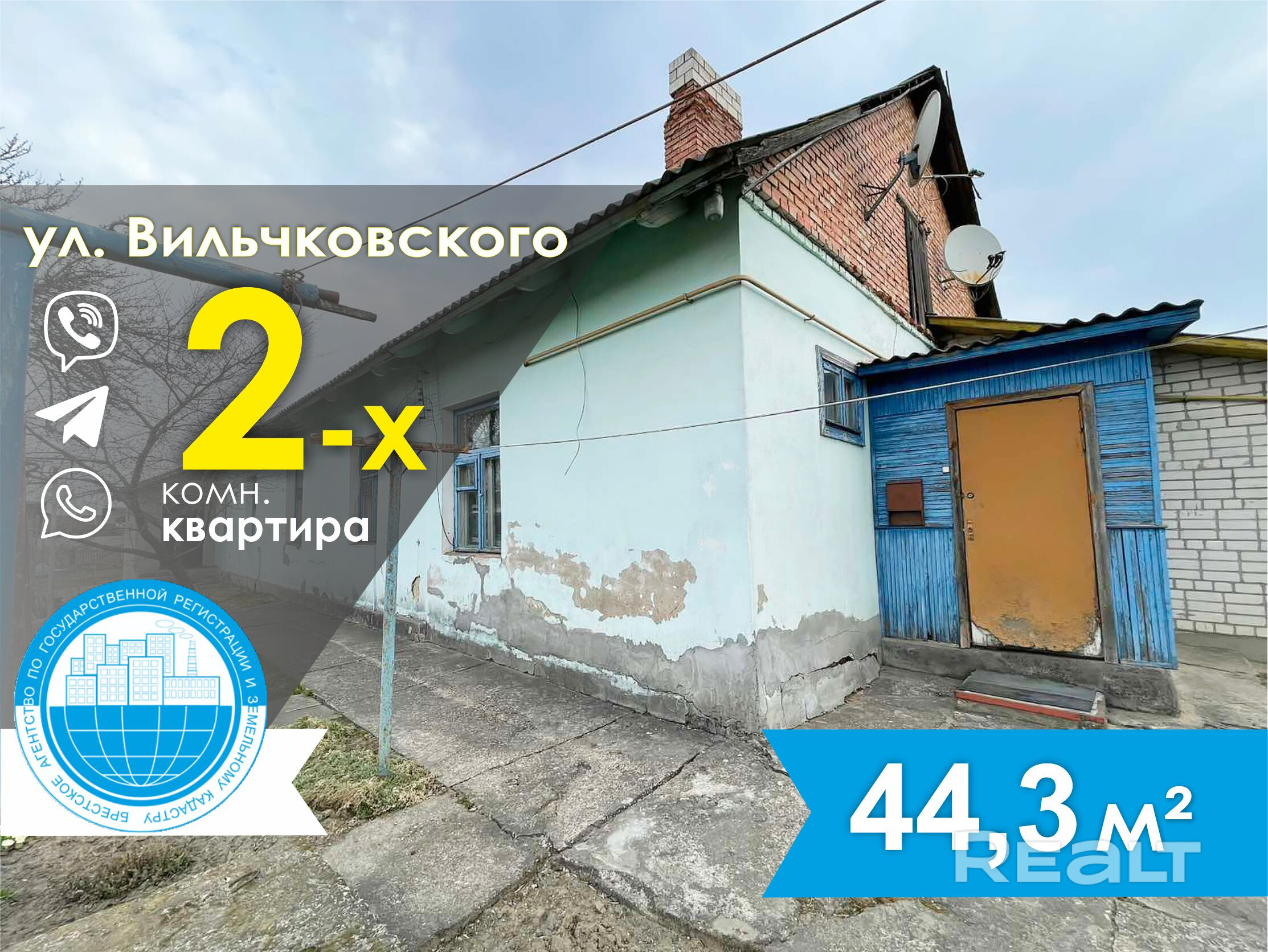 Продается двухкомнатная квартира в блокированном жилом доме с отдельным входом по ул. Вильчковского (район Центрального вокзала). Дом шлакобетонный. Этаж 1/1. Общая площадь – 44,3 кв.м, жилая – 28,0 кв.м, кухня – 6,5 кв.м. Отопление – установлен котел, водопровод и канализация– центральные.