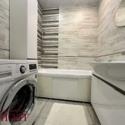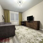 Выполнен качественный ремонт: натяжные потолки, межкомнатные двери из натурального дерева, ламинат на полу, современная плитка, металлическая входная дверь. В санузле установлена акриловая ванна и бойлер. Также есть кондиционер.