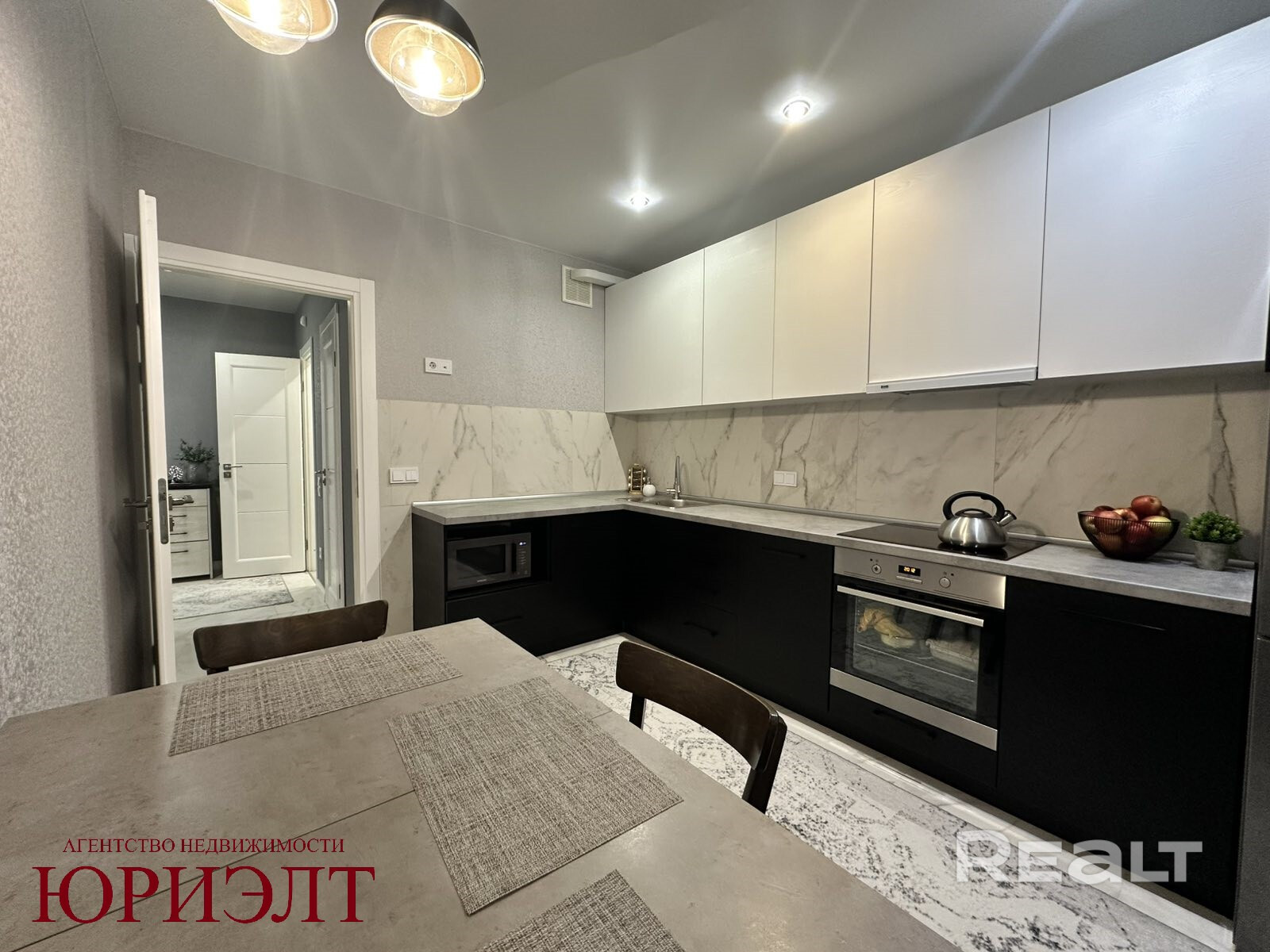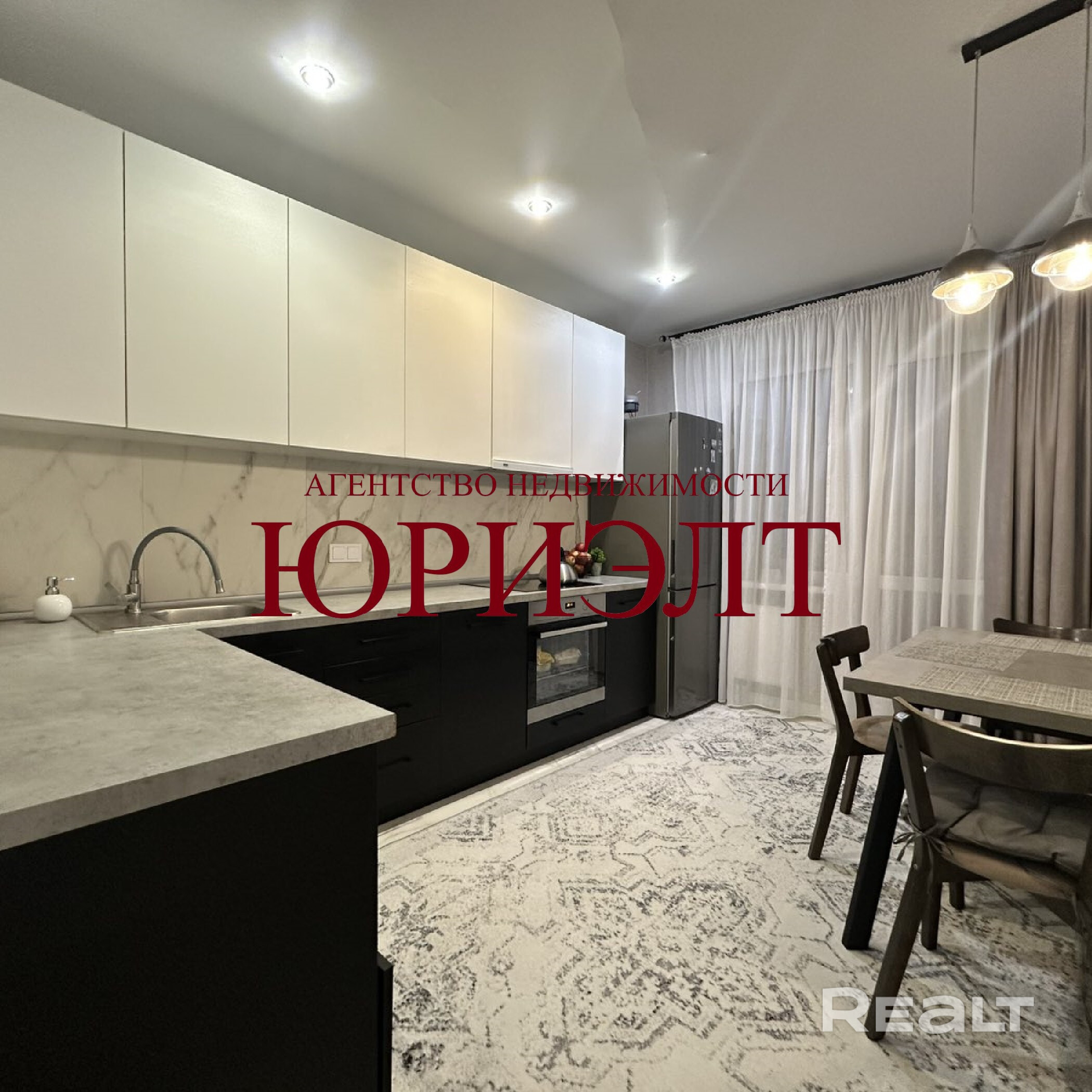 Квартира продается с мебелью и техникой: кухонный гарнитур, встроенная техника, мебель в прихожей, гостиной и спальне, осветительные приборы, шторы и тюль.