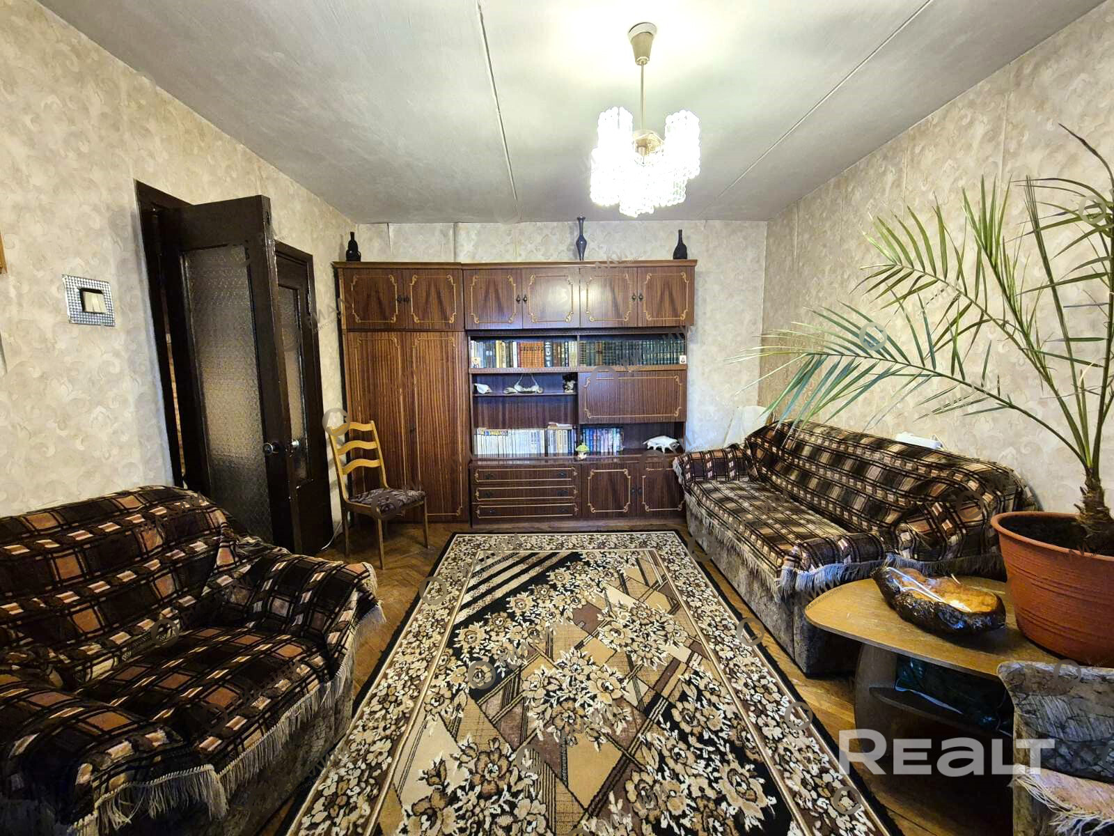 Квартира в жилом виде: потолки - побелены, на полу паркет, стены оклеены обоями, санузел облицован плиткой, окна ПВХ (кроме спальни), входная дверь деревянная, межкомнатные старого образца.