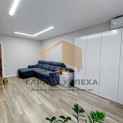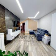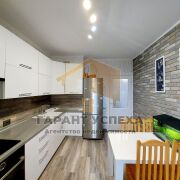 Установлены стеклопакеты ПВХ. Напольное покрытие - ламинат. Натяжной потолок в зале, в остальных - выровнен и покрашен. Отделка стен итальянской плиткой, дубовые панели + итальянские обои. Балкон утеплен, выполнен в едином стиле с кухней. Кухня пластик + фурнитура blum. Входная дверь металлическая, межкомнатный двери - МДФ. В квартире установлен кондиционер.