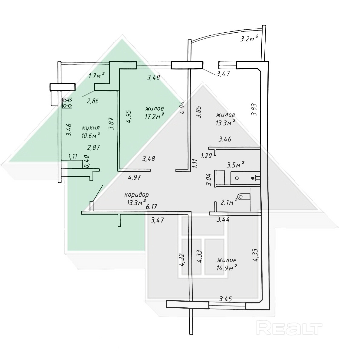 3 434 р.≈ 1 218 $ за м²