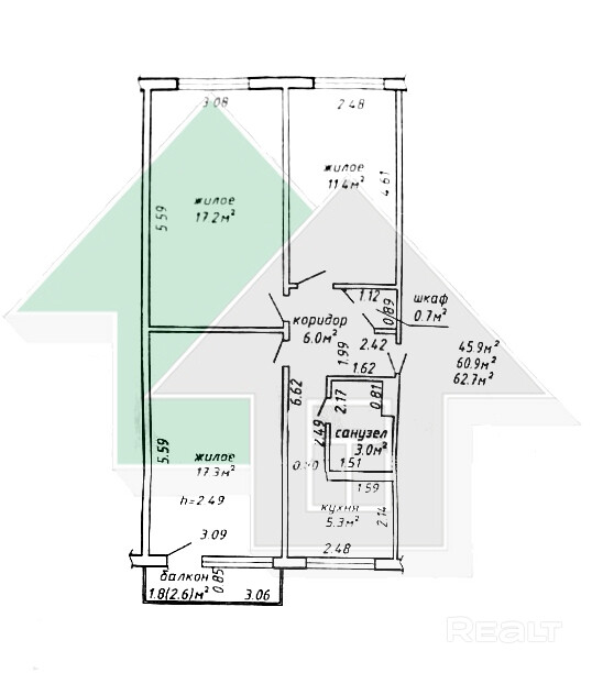 Предлагаем купить 3-комнатную квартиру по Партизанскому проспекту (р-н Восток). Площадь по СНБ 62,7м2, общая площадь 60,9м2, жилая площадь 45,9м2, площадь кухни 5,3м2, совмещенный санузел, первый этаж пятиэтажного панельного дома 1973 г.п. Есть большой подвал. Застекленный балкон. Квартира в жилом состоянии: стеклопакеты, входная дверь двойная деревянная, полы – паркет, плитка, потолки – снежка/потолочная плитка, стены оклеены обоями, в санузле плитка. Чистый подъезд, хорошие соседи. Во дворе оборудована детская площадка. Отличное месторасположение! Хорошее транспортное сообщение. В шаговой доступности находятся: магазины, д/ сады, гимназия, школы, банк, аптека, парк. Код объекта 26067. ТОРГ Договор № 67 от 15.04.2026 г.