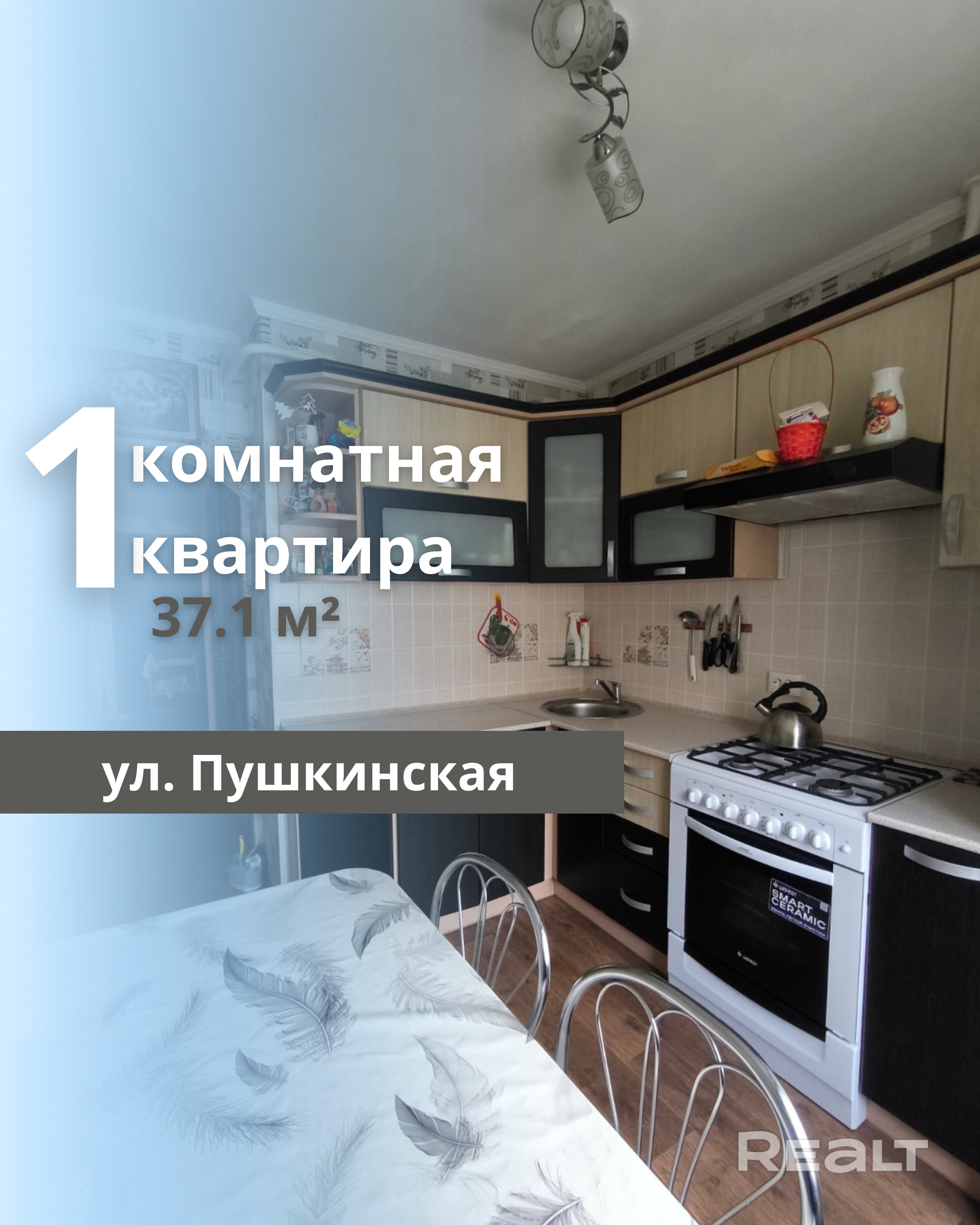 Предлагается 1-комнатная квартира в центре города на улице Пушкинская, расположенная на 1 этаже 9-этажного панельного дома, построенного в 1978 году. Общая площадь квартиры составляет 37.1 кв. м, из которых 17.1 кв. м отведено под комнату, а 7.5 кв. м занимает кухня. В квартире выполнен раздельный санузел, облицованный плиткой современного образца. Она находится в жилом состоянии: сантехника и электрика были заменены, установлены пластиковые стеклопакеты, входная дверь металлическая. Полы покрыты линолеумом и ламинатом, потолки оформлены снежкой, а стены оклеены обоями. В доме имеется балкон общего пользования для четырех квартир. Кроме того, жильцы могут воспользоваться большой лестничной площадкой и парковкой. Район обладает развитой инфраструктурой, что делает проживание здесь комфортным и удобным.