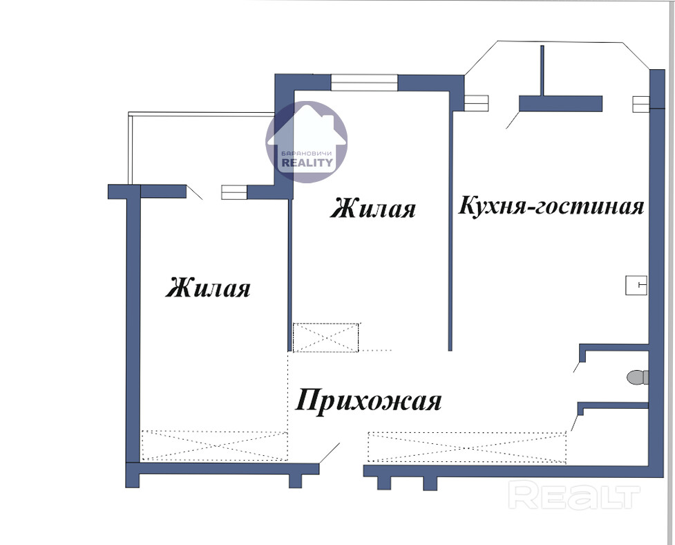 * Кухня – гостиная с выходом на застекленную лоджию;