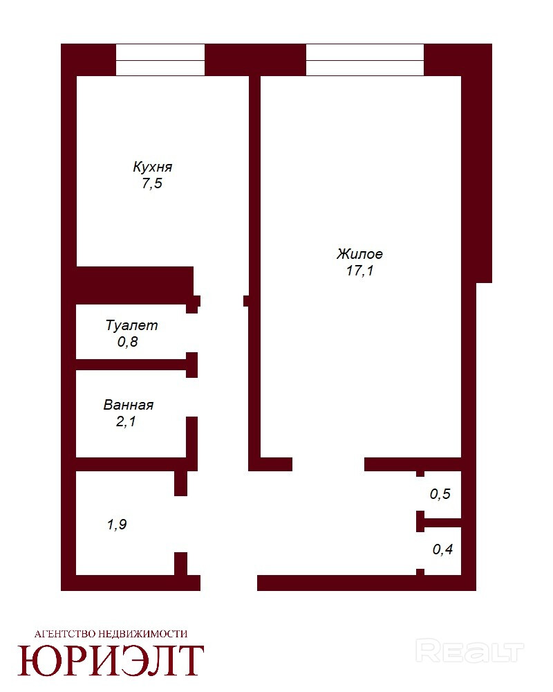 Общая площадь — 37 м2