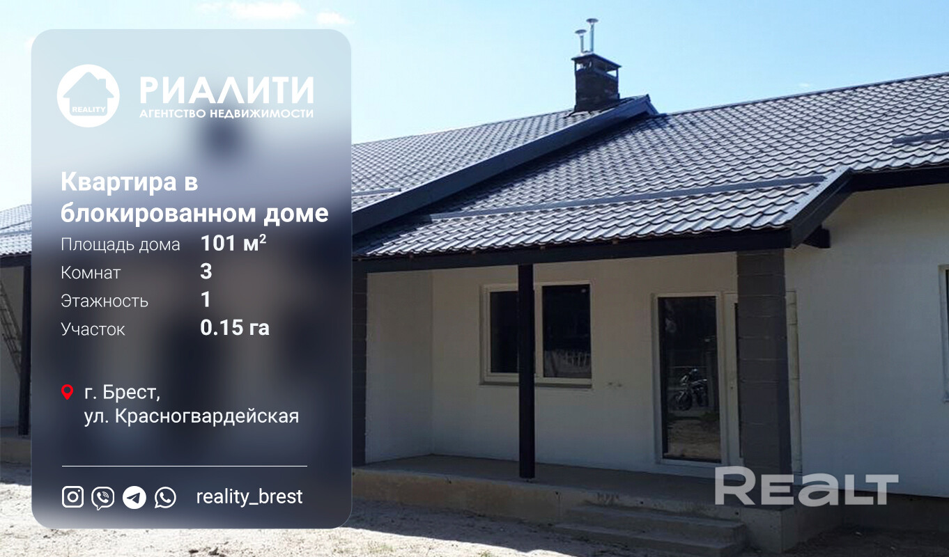 В продаже таунхаус из 3-х блокированных квартир под чистовую отделку, каждая площадью 101 кв.м с продуманной планировкой и террасами с двух сторон.