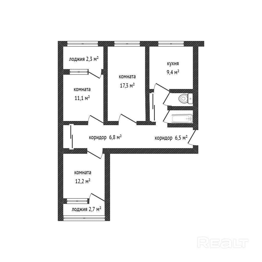 Санузел раздельный.