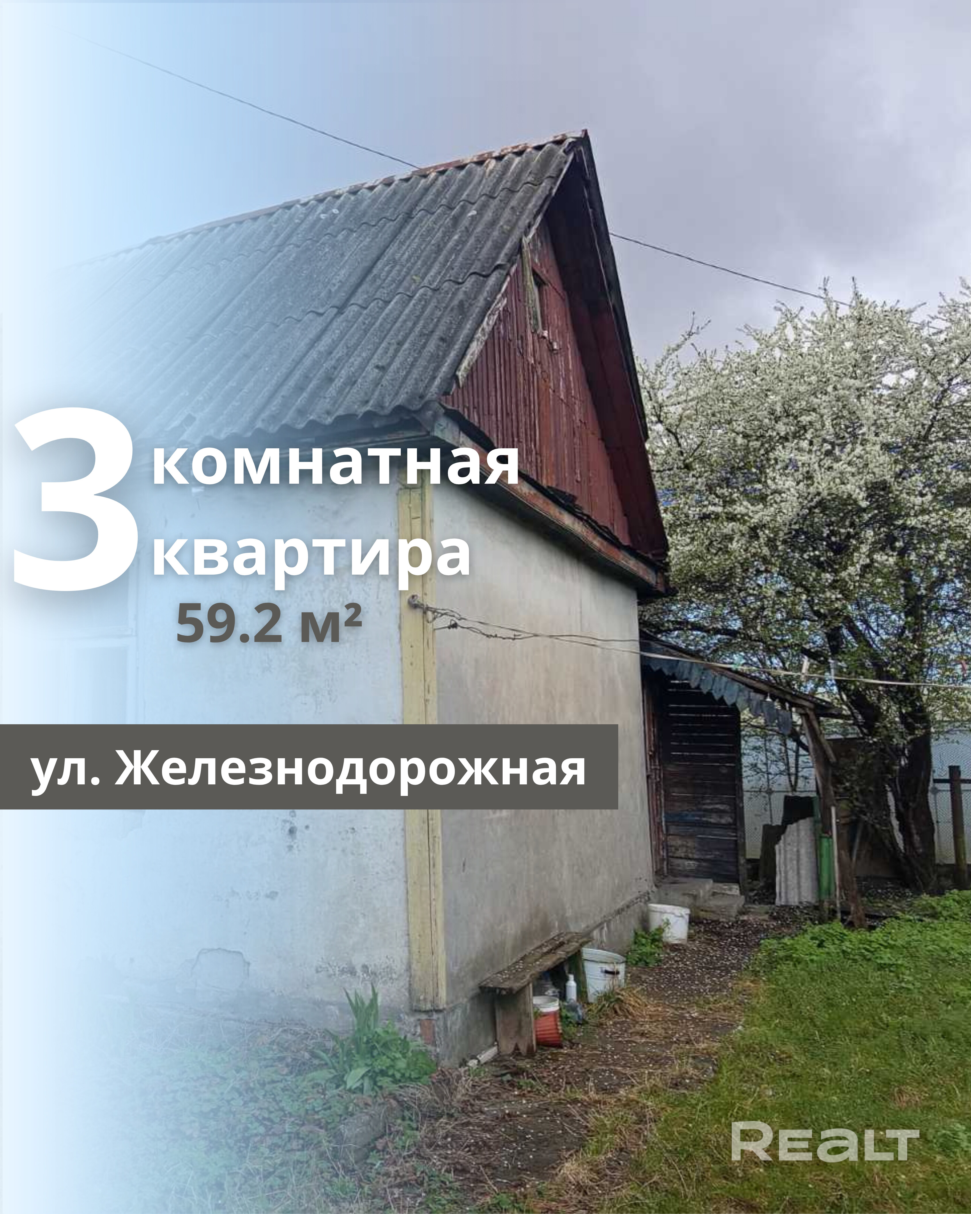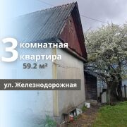 Продается 3-комнатная квартира в блокированном жилом деревянном доме 1950 года постройки, который был реконструирован в 2023 году, по улице Железнодорожная. Общая площадь квартиры составляет 59.2 кв.м., жилая площадь — 40.8 кв.м., кухня — 11.2 кв.м. Отопление осуществляется с помощью твердотопливного котла, горячая вода подается через колонку, электричество централизованное. Внутри квартиры полы деревянные, стены оклеены обоями, а потолки оформлены снежкой. На приусадебном участке имеется сарай и уборная. В шаговой доступности находятся магазин и остановка общественного транспорта, что обеспечивает удобное сообщение с другими районами.