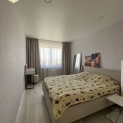 Расположена на 15 этаже 16- этажного дома 2021 года постройки. Площадь квартиры по СНБ – 83,1 кв. м., общая площадь – 80,5 кв.м., жилая – 47,8 кв.м.. Санузел раздельный, в туалете установлена инсталляция, ванная комната облицована плиткой современного образца, просторная лоджия застеклена панорамными окнами, по всей квартире натяжные потолки, двери – шпон, на полах- плитка/ламинат. Квартира выполнена в светлых тонах. Также имеется просторная гардеробная комната, с полками для хранения. Широкие коридоры, в некоторых комнатах установлено дополнительное освещение. В кухне остаётся встроенная бытовая техника (варочная поверхность, духовой шкаф Bosch). Встроенные шкафы также остаются новым хозяевам этой квартиры. Окна выходят на обе стороны дороги. В одной из комнат открывается шикарный вид на Брестскую крепость, парк и сам центр города, все салюты видны как на ладони! Дом оборудован видеодомофоном, а также грузовым и пассажирским лифтами. Большой тамбур на две квартиры. К дому прилегает велостоянка и просторная парковка для машин, а во дворе сделана новая безопасная детская площадка. Хорошее месторасположение, удобная парковка, в шаговой доступности магазины, детские сады и школы, парк 1 мая, Брестская крепость, аптеки, банк, остановки общественного транспорта.