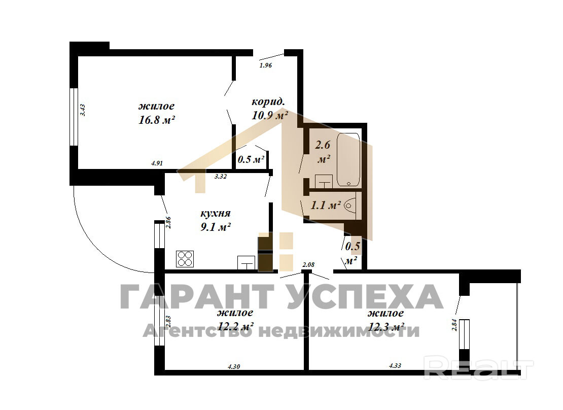 Лот 9588. Звоните для более подробной информации Продается просторная 3-комнатная квартира в г. Брест по ул. Гаврилова (мкр. Восток). Расположена на 4 этаже 9-этажного дома. Общая площадь квартиры составляет 66,0 м² (по СНБ – 70,4), жилая – 41,3 м², кухня – 9,1 м². Улучшенная планировка – кухня с выходом на лоджию. В квартире установлены деревянные стеклопакеты и ПВХ. Потолки частично окрашены и плитка, напольное покрытие - линолеум. Две лоджии застеклены.