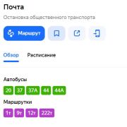 Транспортное сообщение: о.п. «Почта», автобусы 20,37, 37А, 44, 44А, а также маршрутное такси 1, 9, 12, 222.