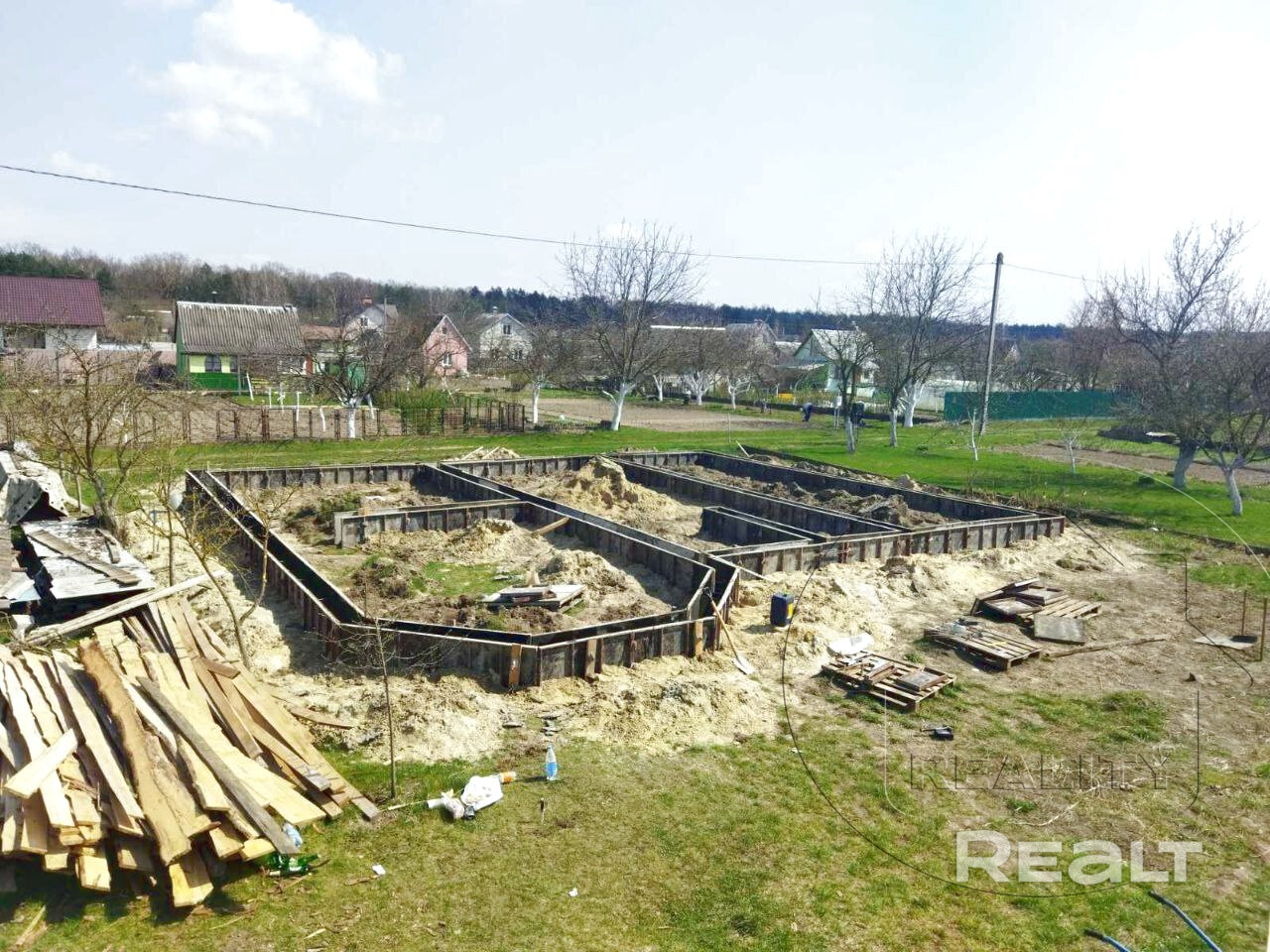 На участке фундамент современного дома - бунгало, построенный в полном соответствии строительным нормам и с большим запасом прочности: 0.9м глубиной и 0.6 м над уровнем нулевой отметки, капитально армирован, гидроизолирован.