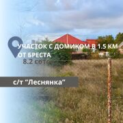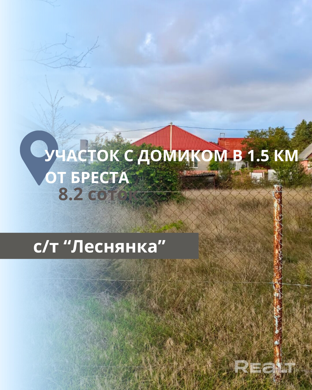 Продаётся дачный участок с домиком в СТ "Леснянка", площадью 8.20 соток и домиком площадью 23.6 кв.м., построенным в 1996 году. Участок расположен всего в 1.5 км от Бреста в направлении города Каменца, что обеспечивает удобный доступ к городской инфраструктуре. В непосредственной близости находится остановка районного сообщения, а также лес и река Лесная, что делает это место привлекательным для отдыха на природе. Участок имеет правильную прямоугольную форму и огорожен забором со всех сторон, что обеспечивает дополнительное уединение. Домик построен из силикатного кирпича, крыша покрыта шифером. На участке имеются все необходимые коммуникации: централизованный газ (на участке), водоснабжение от скважины с гидрофором и централизованное электричество. Также присутствует хозяйственная постройка и туалет, что добавляет удобства в использовании данного участка.