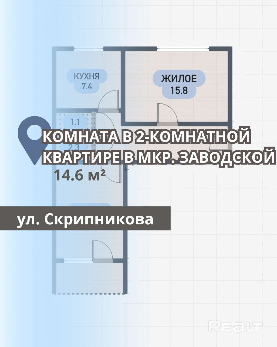 КОМНАТА В 2-КОМНАТНОЙ КВАРТИРЕ НА СКРИПНИКОВА