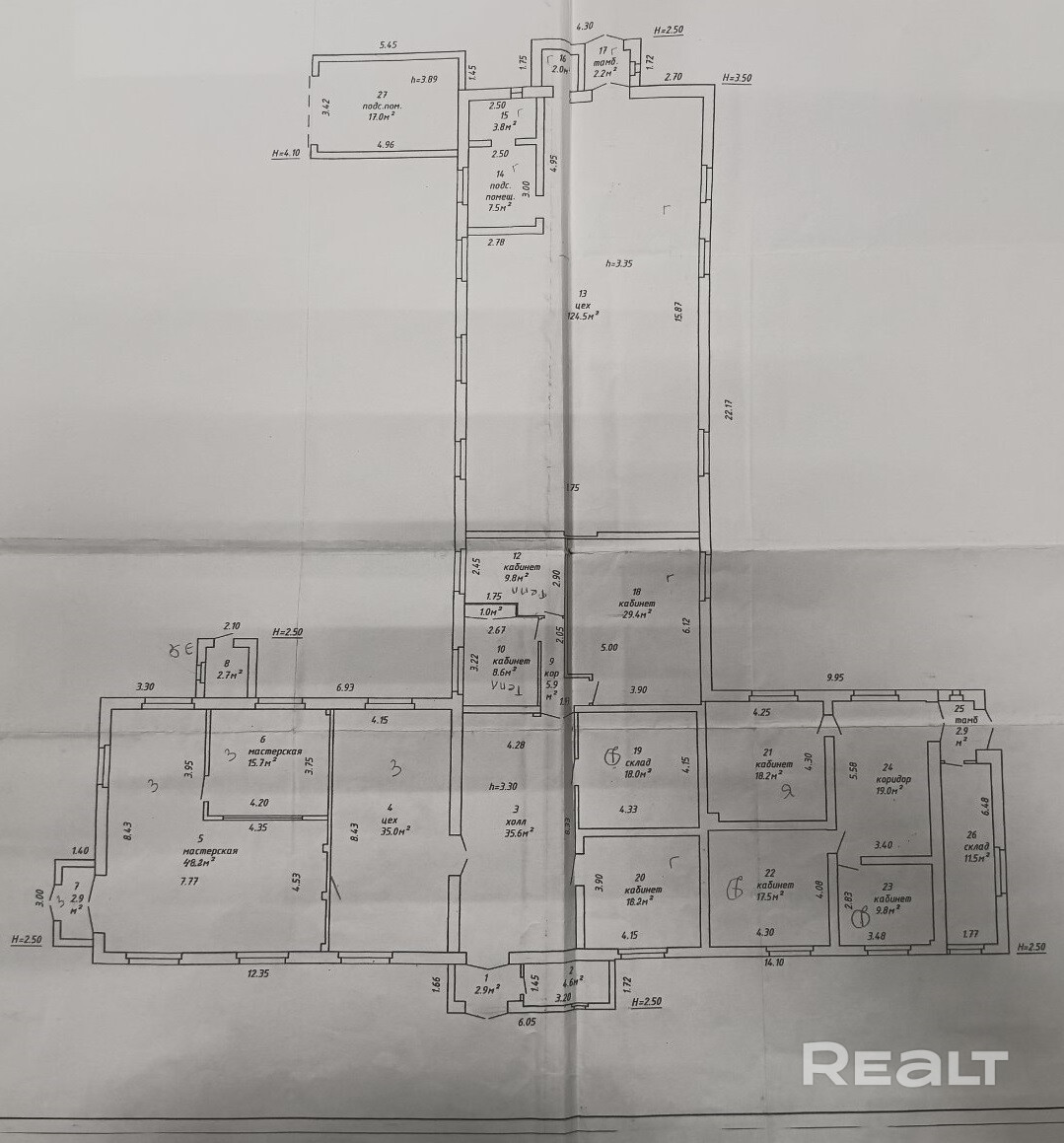 Продам Комплекс Административно-Производственных зданий Центр Брест ул. ГОБК 34, общая площадь 1232,7 кв.м., в т.ч.: