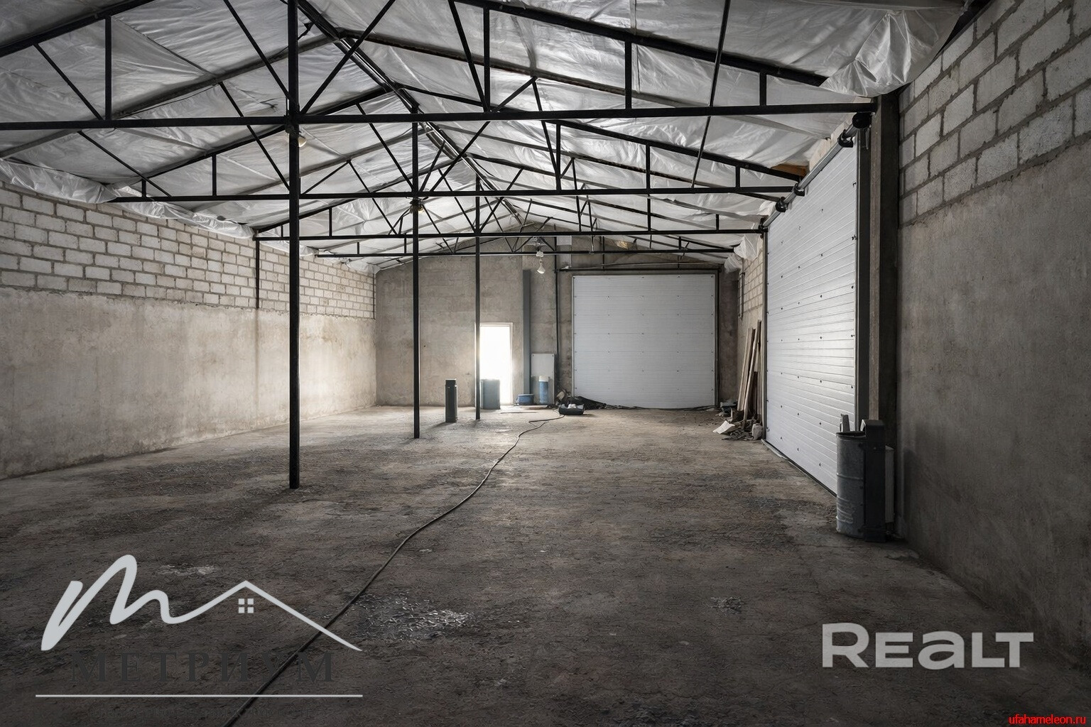 - Конструкция: кирпичные стены, металлический каркас, высокие потолки, большие гаражные ворота для удобного доступа грузового транспорта.